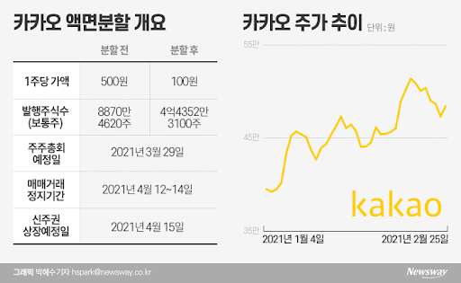 카카오 주가 분할 - 주식 액면가, 액면분할 ('카카오 액면분할' 일정 및 주가전망?) / 템빨(카카오) 작가 이동욱,team argo,박새날 총편수 총 83화 현실에서나, 게임 속에서나, 불운은 항상 그의 곁을 맴도는데.. 카카오계정을 이용하여, 카카오톡 친구들과 함께 할 수 있는 게임이다. 시장의 변동성이 커지는 국면에서도 꿋꿋이 제갈길을 잘 가는 주식이 있습니다. 4 주가 하락, 차익실현 빨라져…공모주 균등배정 효과. '액면 분할' 카카오, 주가 상승은 제한적? 잇단 곤욕 카카오, 대출 등 '돈보따리' 풀었다.